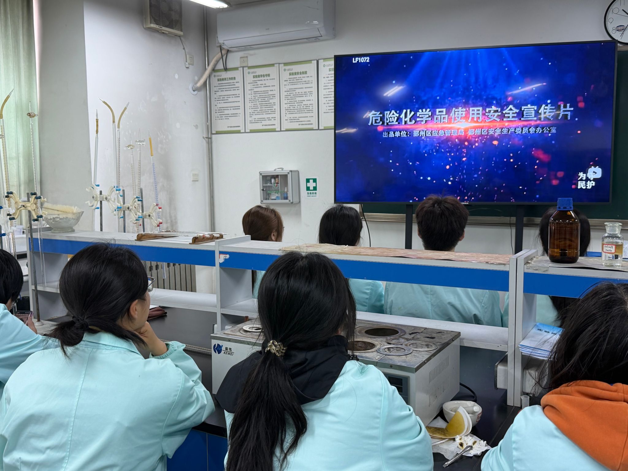 2.丰富培训形式内容,增强教育实效。中心积极组织学生集中观看《危险化学品使用安全宣传片》等实验室安全专题教育视频,通过直观生动的案例展示、通俗易懂的知识讲解,让学生深刻认识到实验室安全隐患的危害性,熟练掌握危险化学品使用、储存等核心安全知识,进一步提升安全防范自觉性。