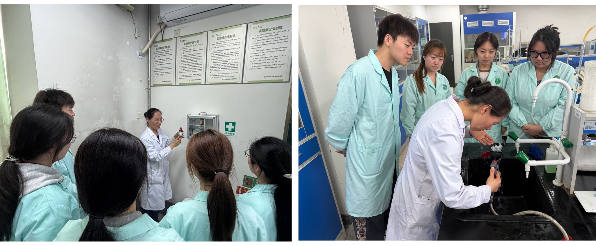 1. 开展化学试剂泄漏应急处置演练。针对实验过程中可能出现的化学试剂溅到身体、眼睛等突发情况,中心教师现场演示了规范的应急救治方法,详细讲解了实验室洗眼器、紧急喷淋装置的正确操作流程,指导学生亲手实操演练,确保在突发状况下能够快速、规范开展自救互救。